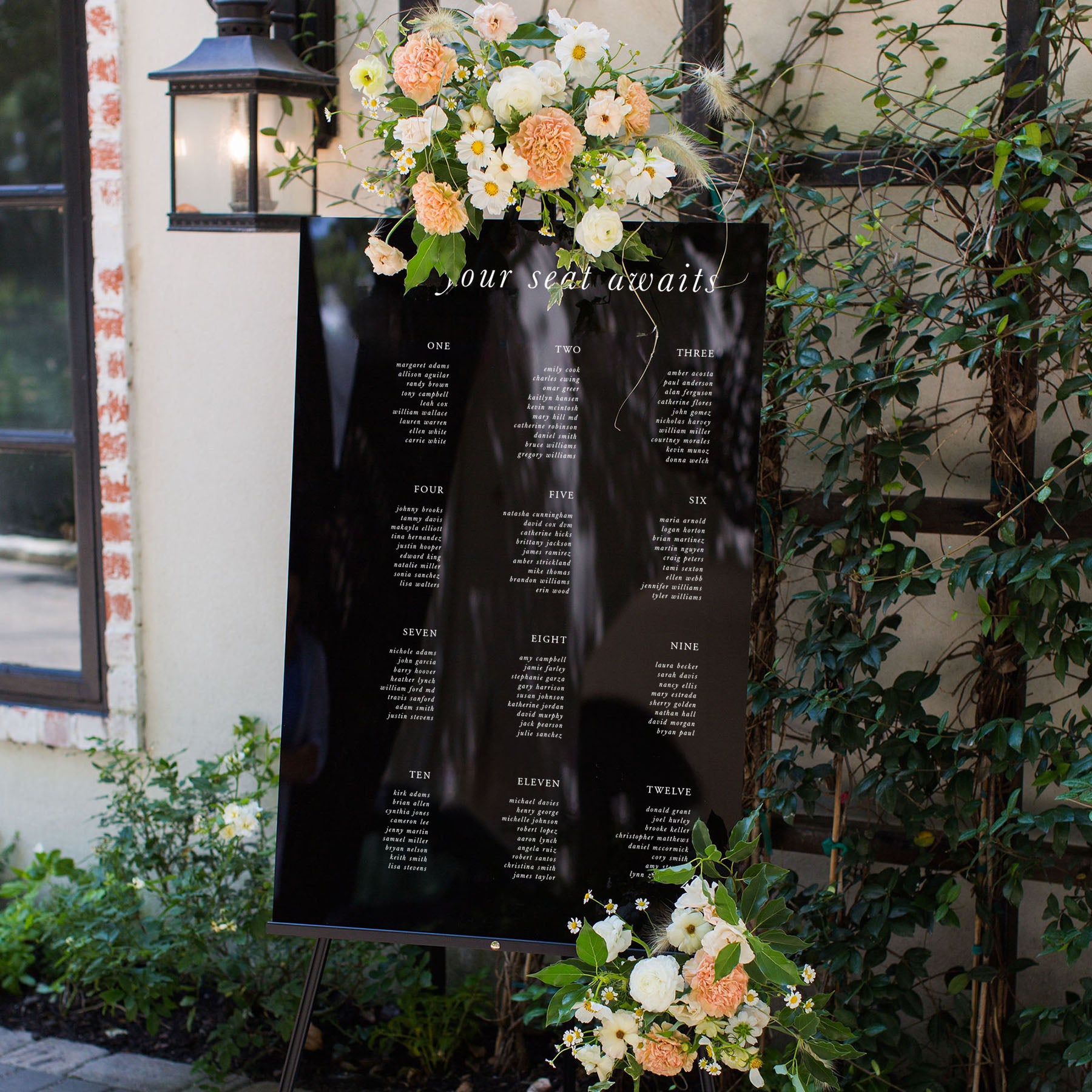 Make your special event one to remember with our fantastic acrylic seating chart sign. It's stylish and stylishly designed in a variety of colors to perfectly match your chosen theme. Elevate your guests' seating experience and add a touch of sophistication to your reception with this must-have sign!