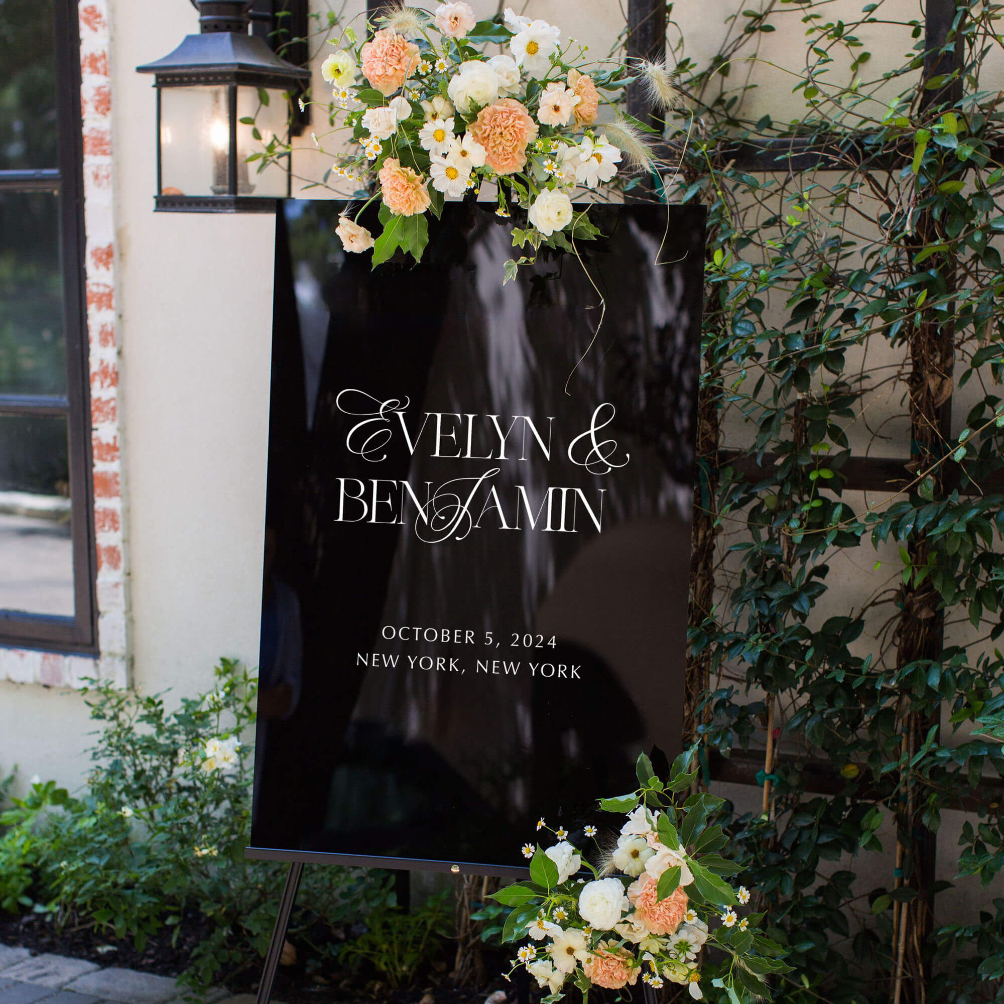 Welcome your guests in style with The Evelyn, an elegant acrylic wedding welcome sign. Featuring a sleek design, this sign will add a touch of sophistication to your special day. Make your guests feel welcome and set the tone for a memorable event with The Evelyn.