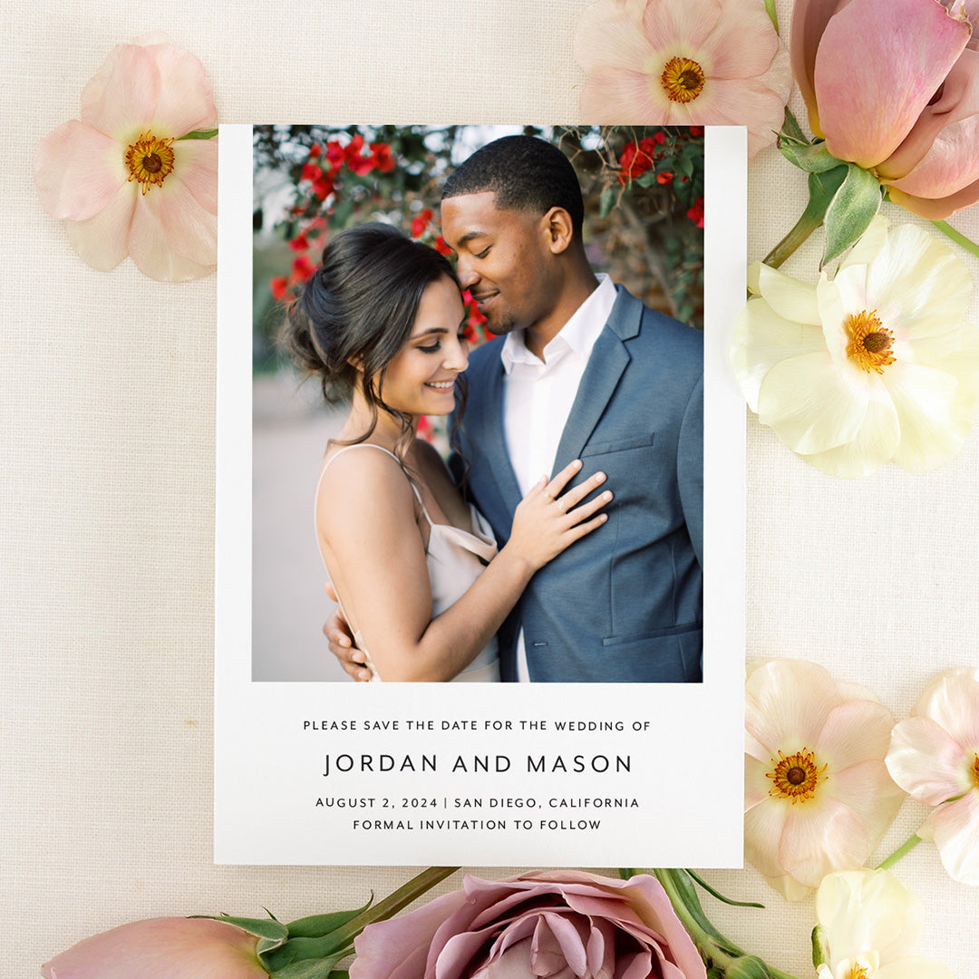 Pair these modern wedding invites with the Jordan Stationery Collection so that your chic style may shine throughout your entire wedding celebration, from save-the-date to champagne toasts.