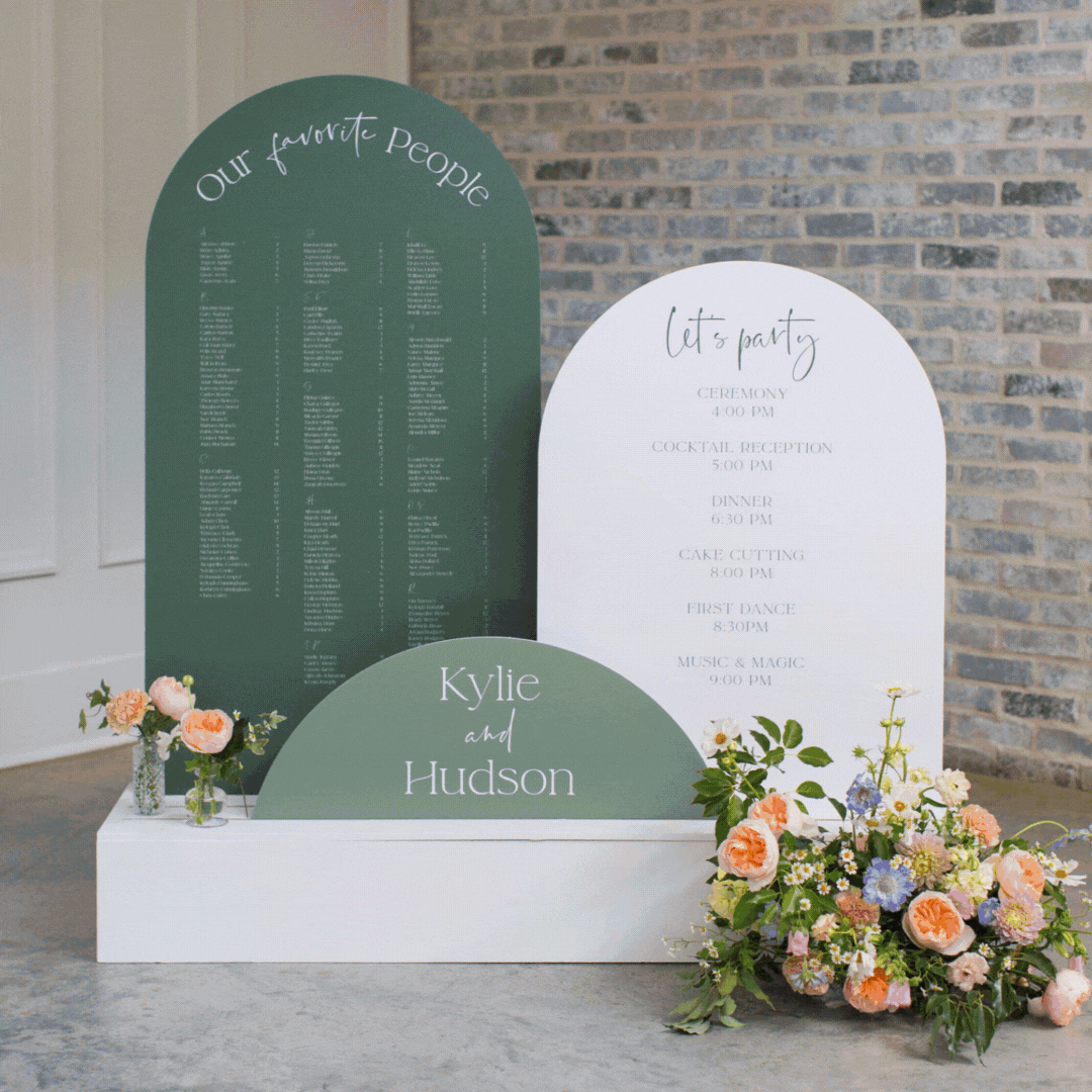 Want to know more about materials, shapes & sizing? Check out our wedding signage guide here.
