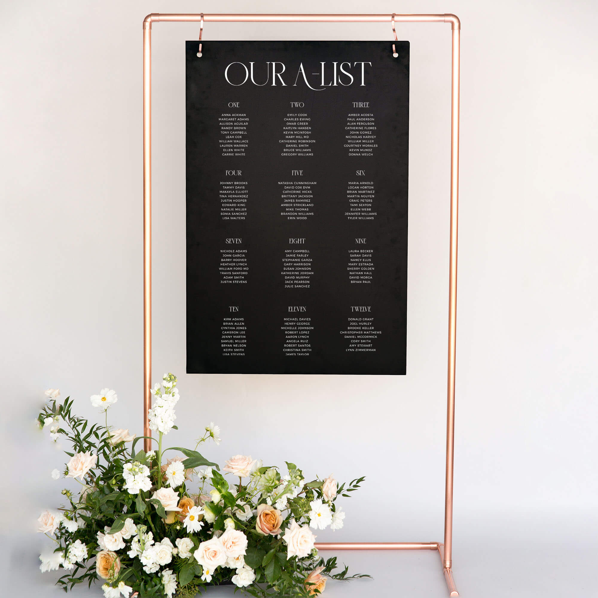 Printed on luxe gatorboard, The Brittany is lightweight, durable, and arrives ready to display. Customize your heading, choose your shape and color palette, and upload your guest list—we’ll handle the rest.