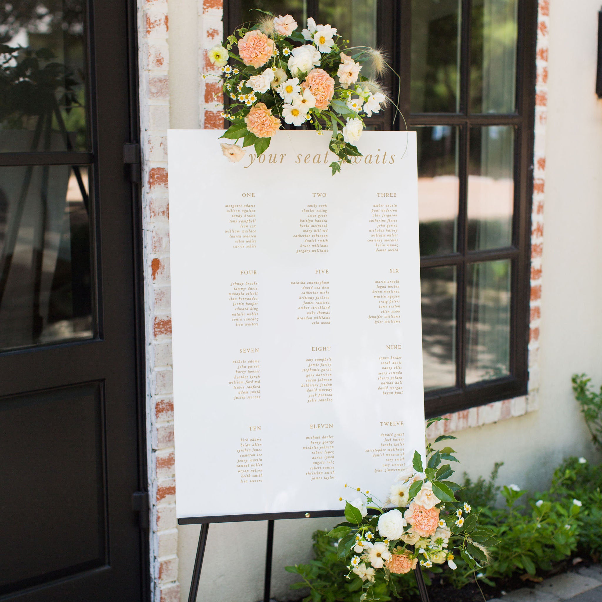 Printed on luxe gatorboard, it’s lightweight, sturdy, and fully customizable in heading, color, and shape. Just upload your guest list and leave the rest to us.